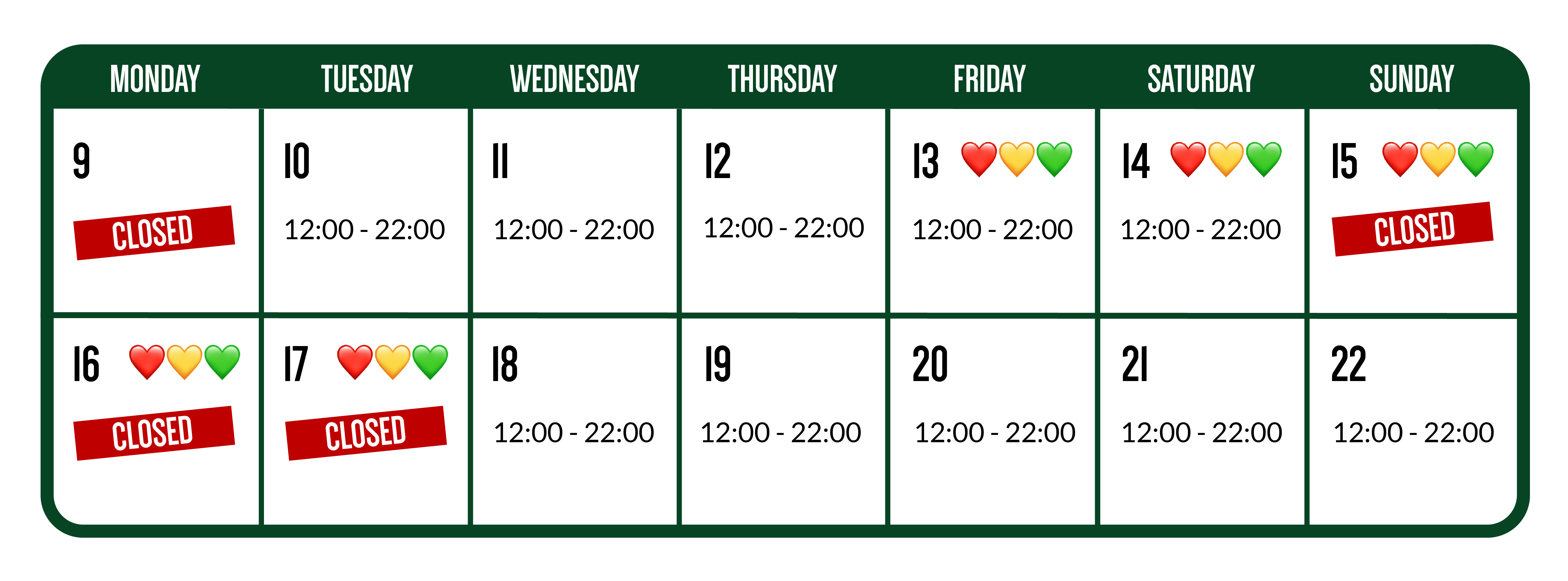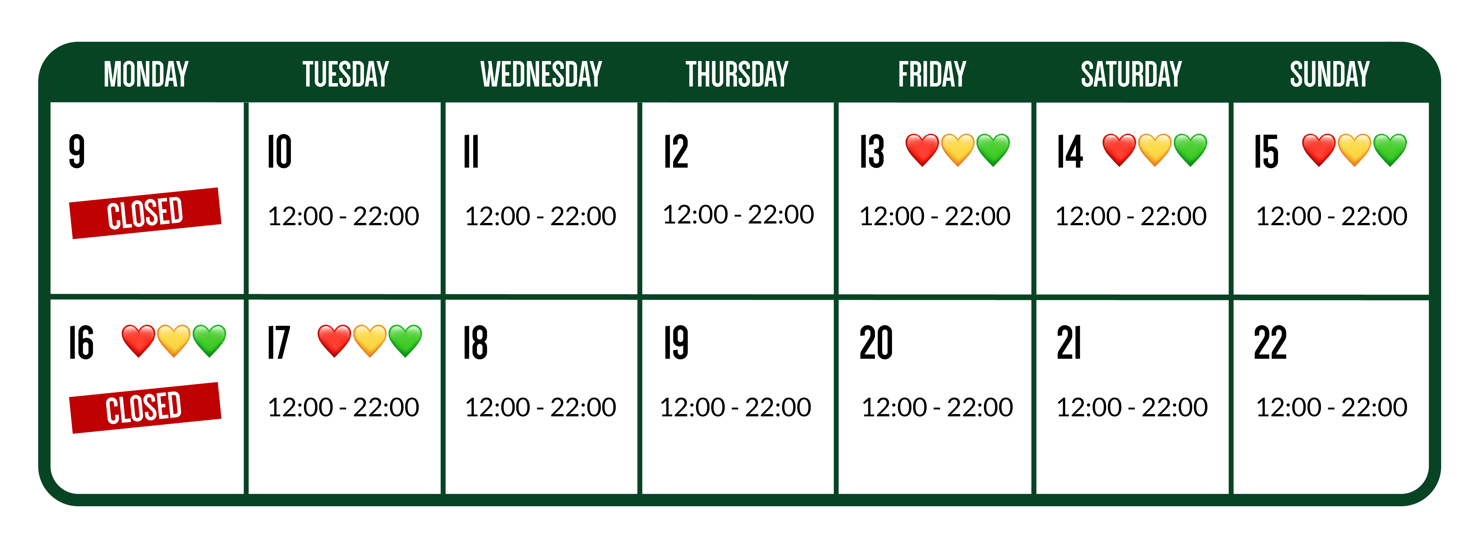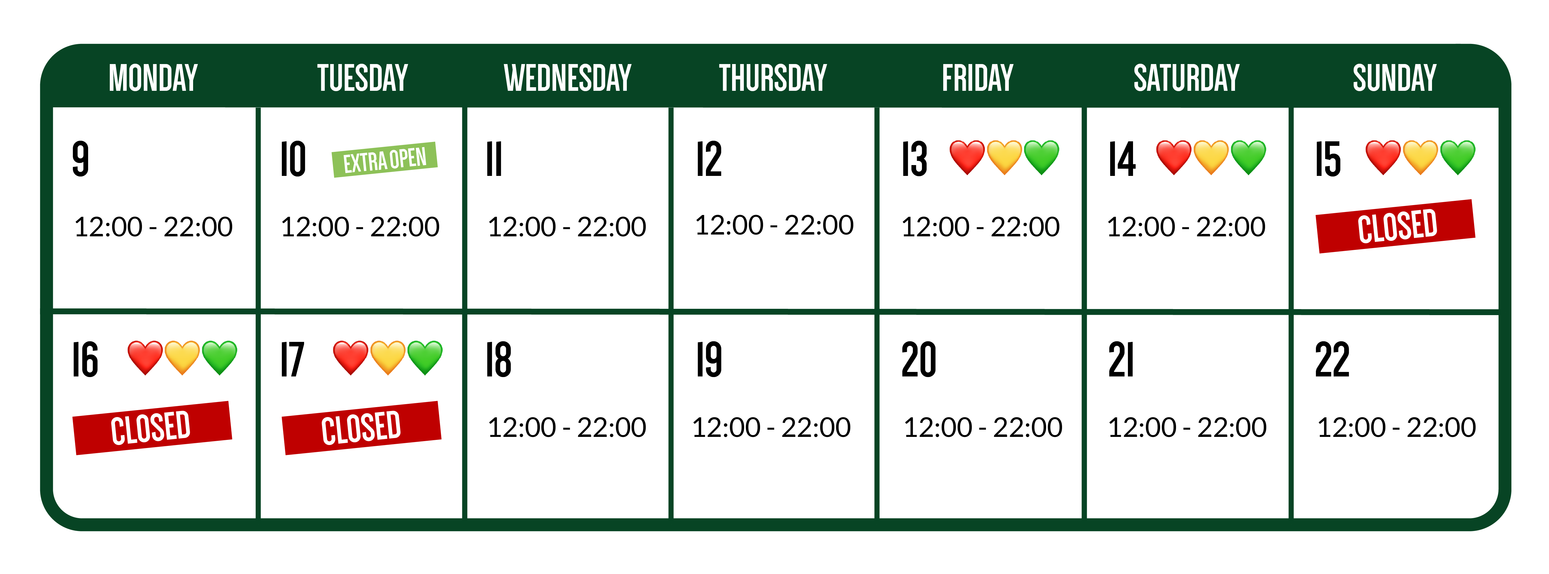 CHOOSE YOUR FAVORITE LOCATION FOR OUR OPENING HOURS DURING CARNIVAL