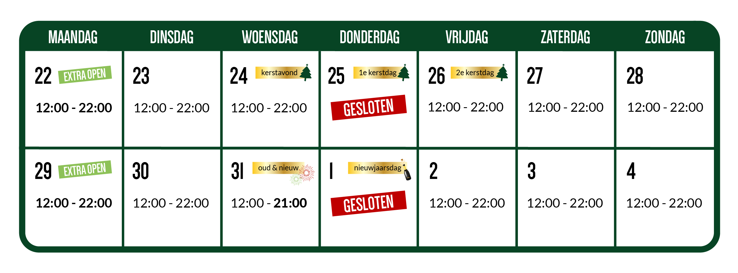 KIES JE FAVORIETE VESTIGING VOOR DE AANGEPASTE OPENINGSTIJDEN